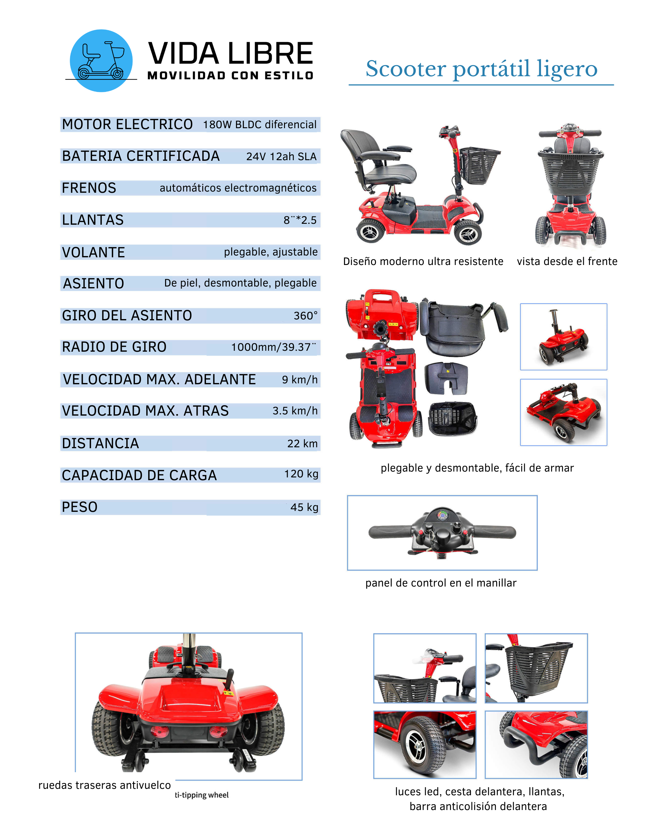 | Chasis Desmontable sin Herramientas y Fácil Transporte | ✅ Se desmonta en menos de un minuto, sin herramientas | ❌ Complicado de desmontar y transportar |